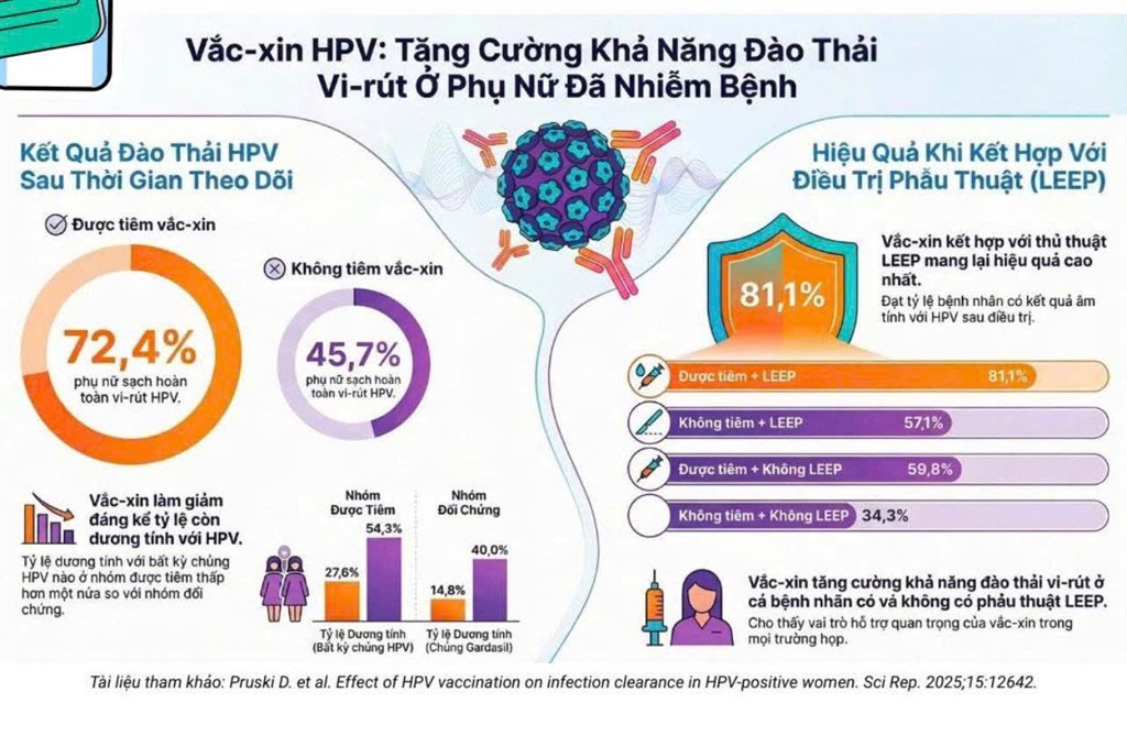 Đặc biệt, ở những phụ nữ đã phải can thiệp điều trị tổn thương tiền ung thư cổ tử cung (như cắt đốt bằng vòng điện – LEEP), việc tiêm vắc xin giúp giảm nguy cơ tồn tại hoặc tái nhiễm HPV so với những người không tiêm.
