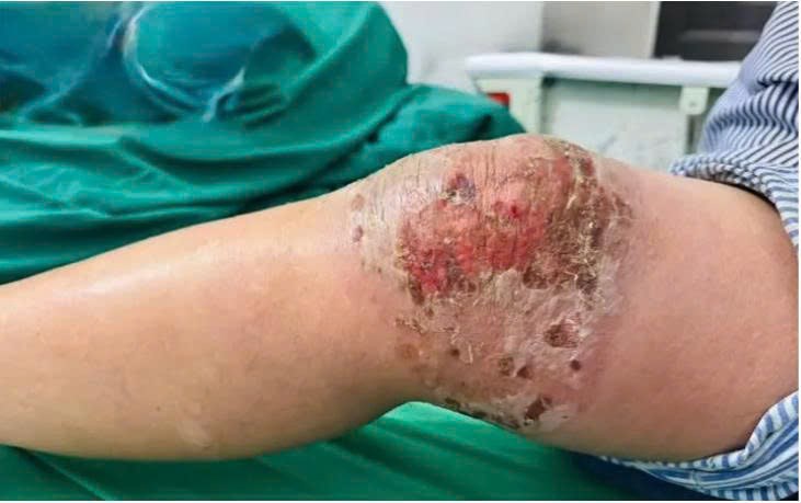Tình trạng tổn thương da nghiêm trọng vùng khớp, nguyên nhân liên quan đến việc tự ý đắp thuốc nam, thuốc lá.